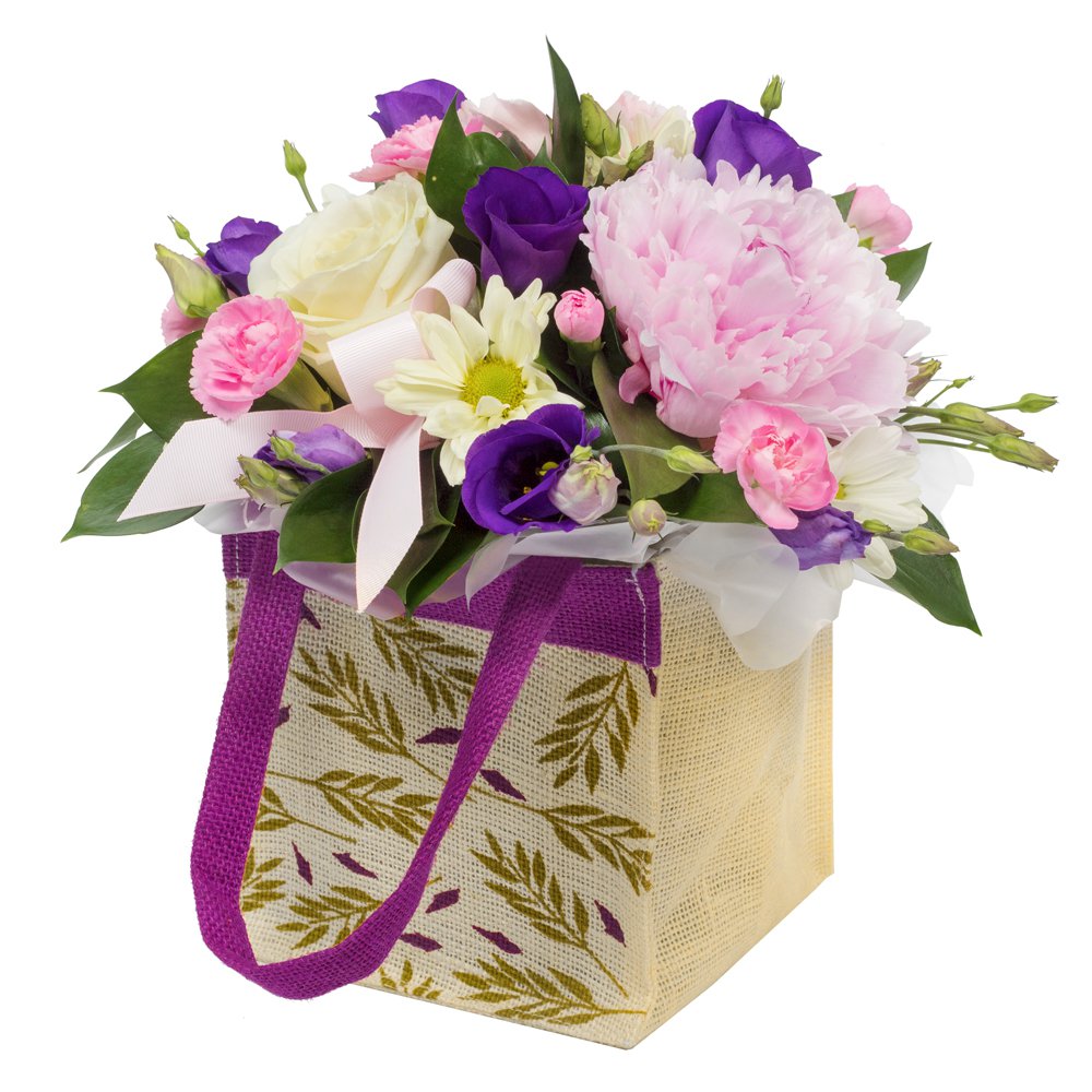 A small collection of choice flowers tastefully arranged in a beautiful gift bag. Perfect for any occasion.